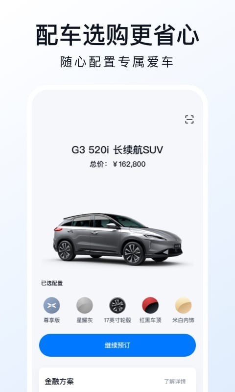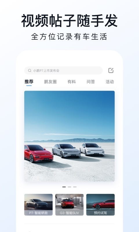 小鹏汽车APP是我们为用户打造的互联网汽车智慧解决方案。在这里,不仅可以设计您的专属小鹏、定制购车金融计划、获取官方一手资讯,还可以随时随地远程控制车辆、畅享省钱省心的充电及车主服务、参与社区互动交流,让试驾、看车、购车、用车过程更加轻松和有趣。