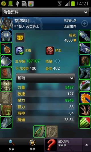 这是一个为使用Android(安卓)系统设备的玩家提供的免费应用程序。让你在连接互联网的移动设备上可以直接查看《魔兽世界》的角色和物品信息,使用拍卖行,公会聊天和一些其它功能。