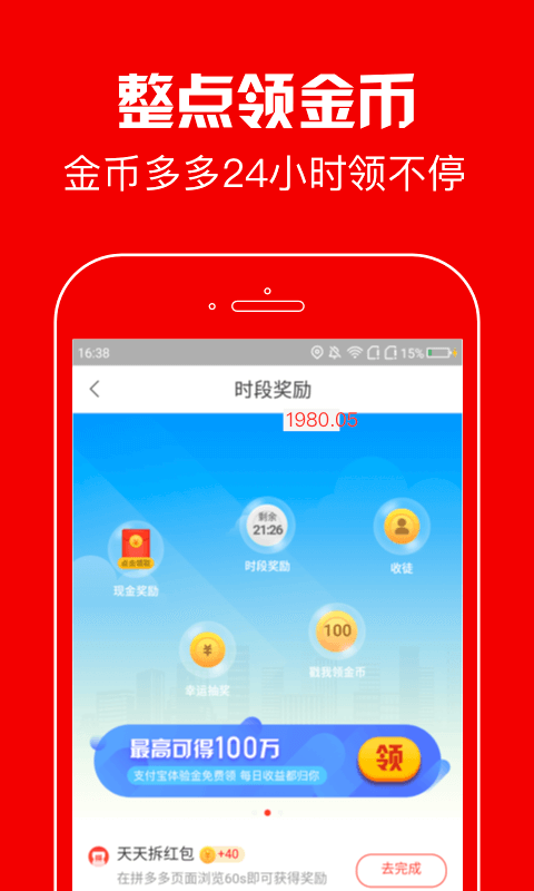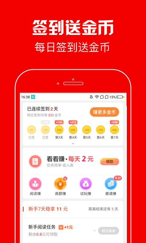 赚钱玩法多多:时段奖励、走路赚钱、大转盘抽奖、每日签到金币源源不断
