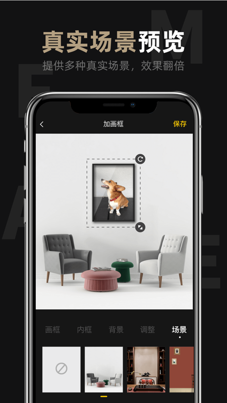 给你的照片、图片、摄影、绘画等作品,添加漂亮的相框,并在真实场景中展示!