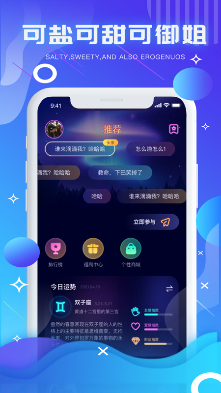 点评:春风和煦,万物复苏,跟随气泡星球一起出发,去追寻快乐吧这个星球应有尽有,跟你一样的人,应该也有跟随你内心*真实的声音,找寻*匹配的那个人气泡星球极速版 是一款以声会友的软件以声音party的形式,将拥有共同爱好的人聚集在一起志趣相同。