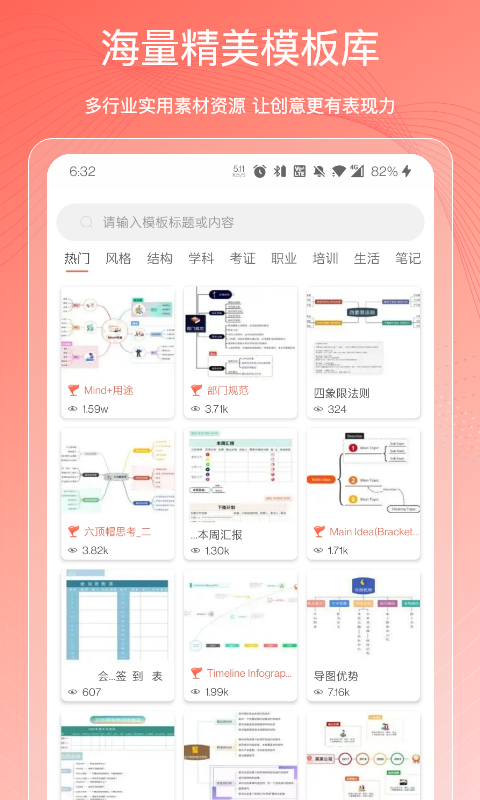 Mind+思维导图中有海量知识思维导图模板,可直接引用,提高学习工作效率。