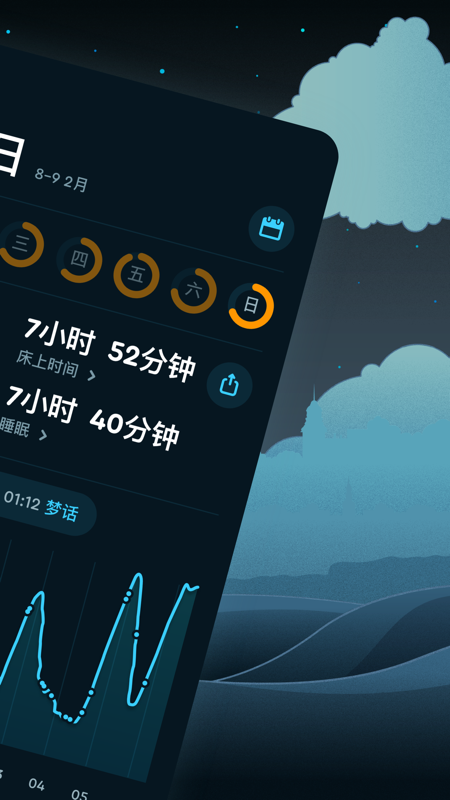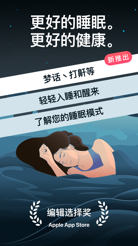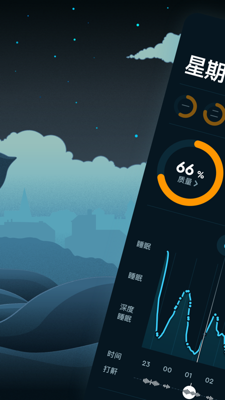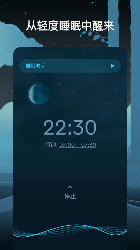 睡眠循环利用全新的理念,来终结你传统使用闹铃的习惯,利用你睡眠进入*浅层的阶段,轻轻地唤醒您。
