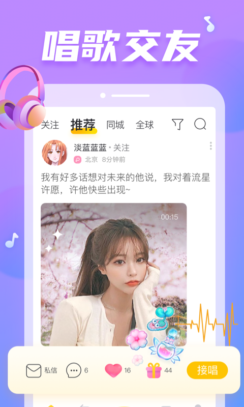 -接唱,用耳觅软件选择你喜欢的人发布的歌声接唱
