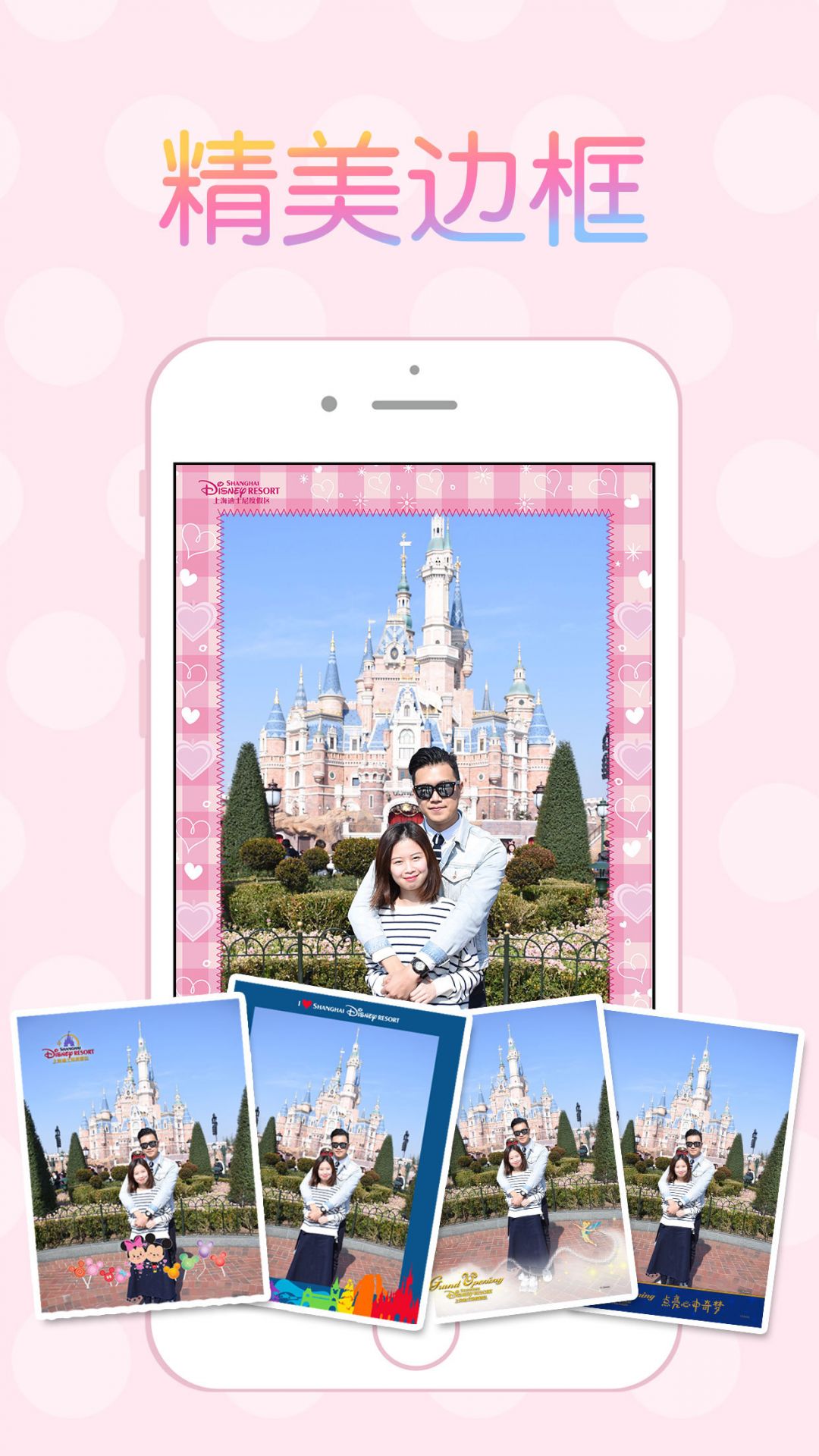 与您喜欢的迪士尼朋友见面拍照、在标志性景点拍摄和部分游乐设施抓拍、 都会获得不同的主题边框,并且会跟随不同季节、活动更新限定主题边框让您收藏。更有机会出现迪士尼朋友们的签名!