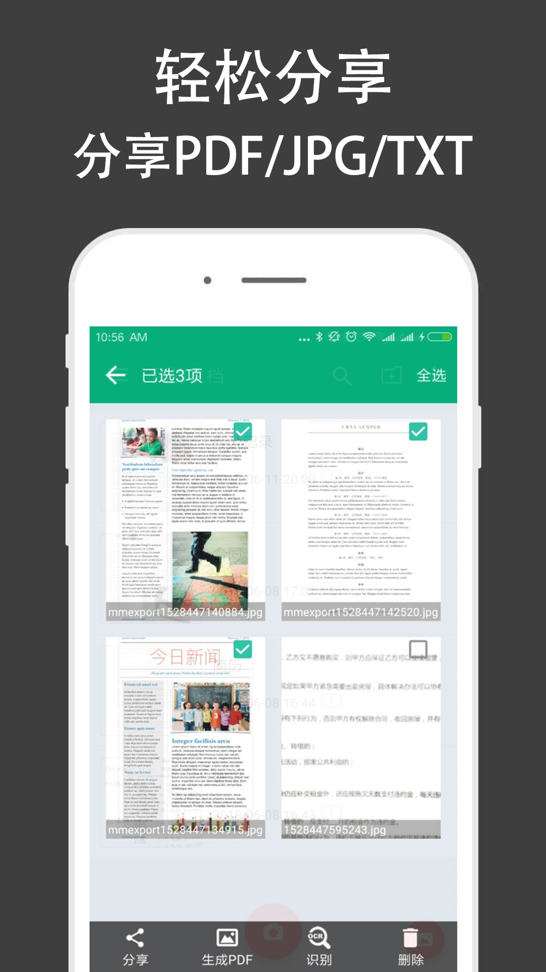 1. 手机拍文档,生成高清PDF文件和JPEG图片