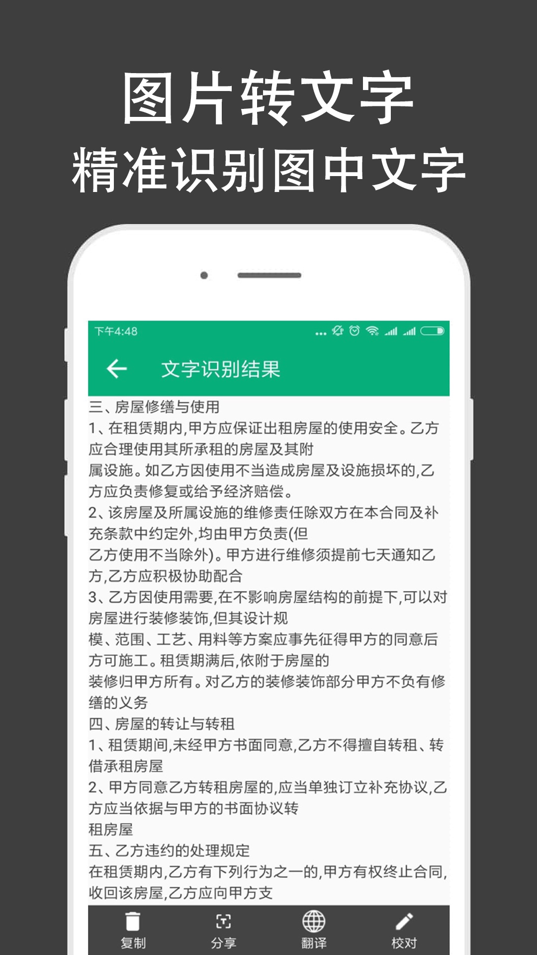 2. 免费校对识别后的文字,并且可以进行复制、分享,或者保存为txt文本