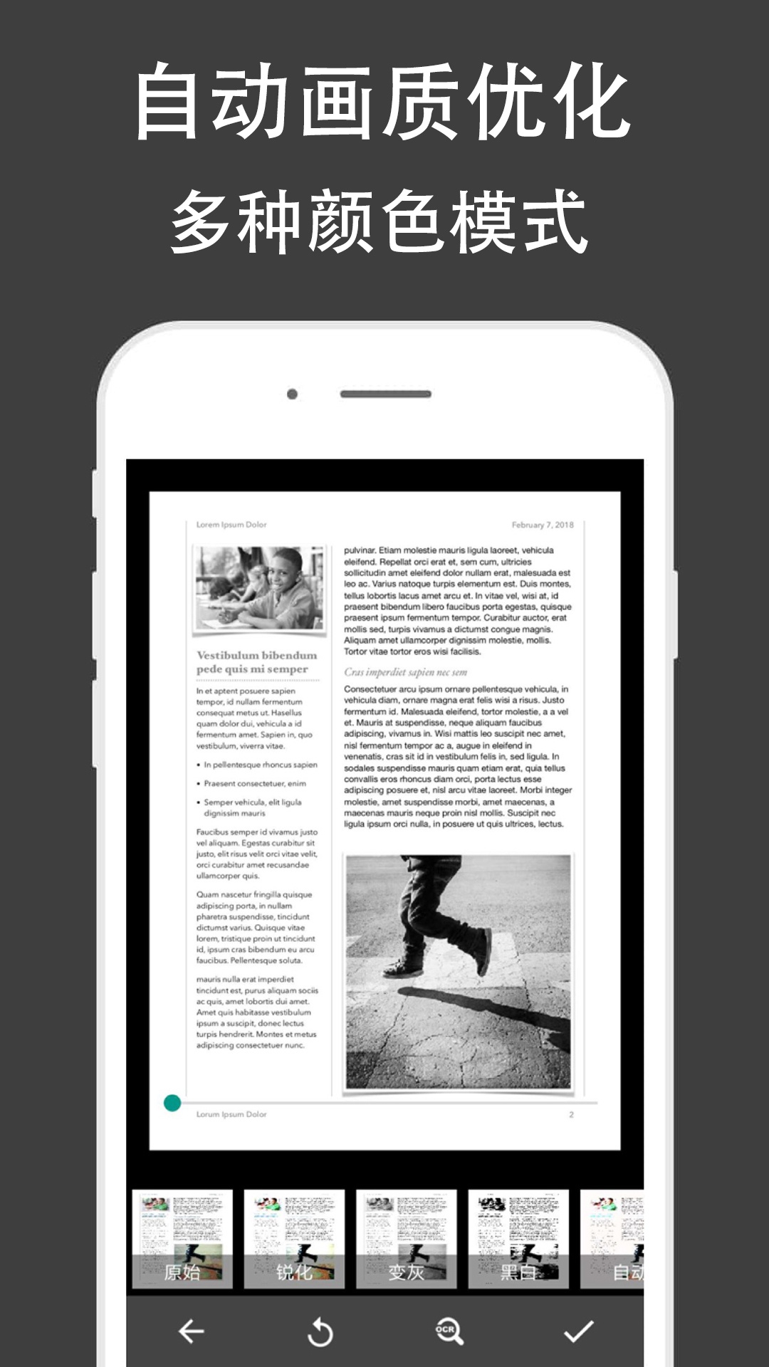 2. 高品质扫描,全能扫描王配备先进的移动扫描技术,自动去除杂乱背景、性能媲美现代桌面扫描仪。自动优化和模糊修正功能助力获得高质量的扫描件。