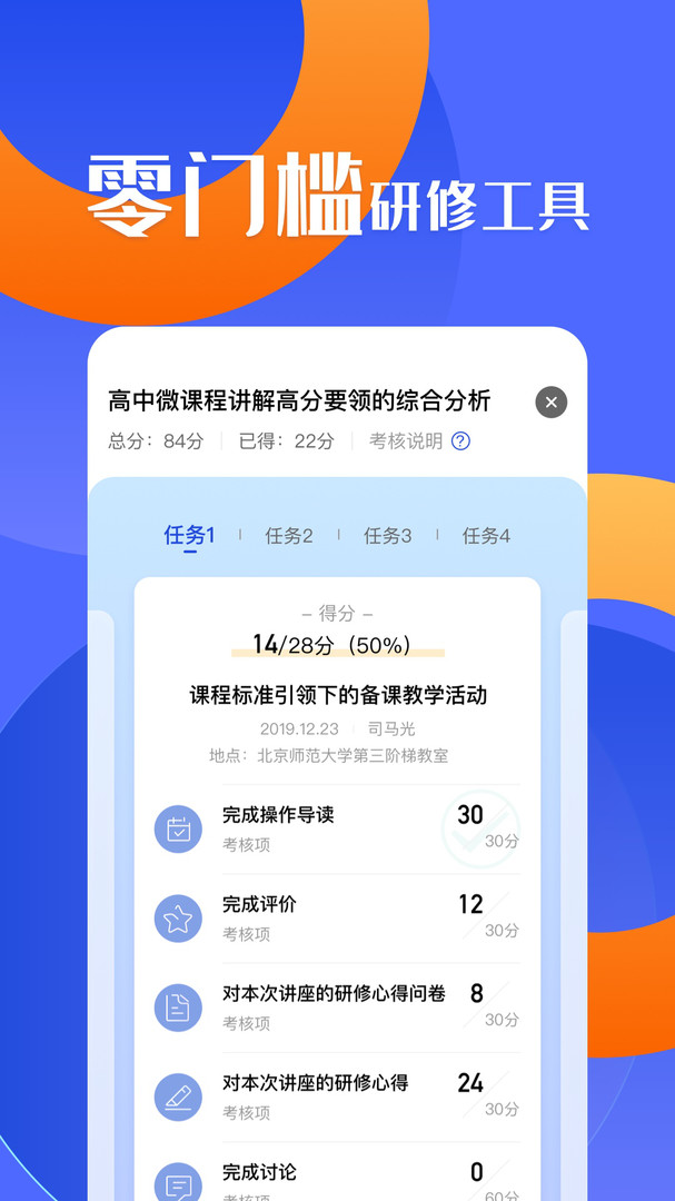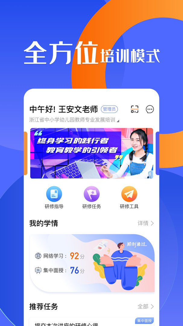 研修宝提供研修工具帮助学员更好完成校本应用实践,学员可以通过“研修宝”查看研修指导、学习进度、查找资源、完成学习内容,可以方便快捷扫码签到、一目了然通知、及时分享专家课件、掌上互动交流。