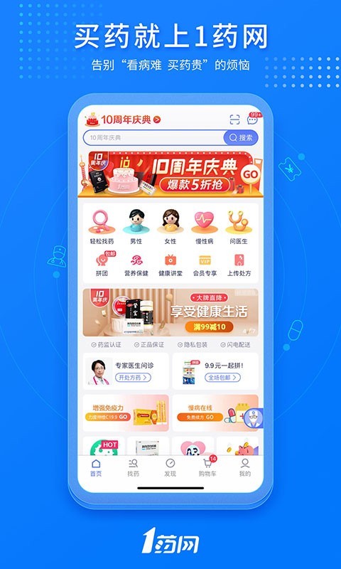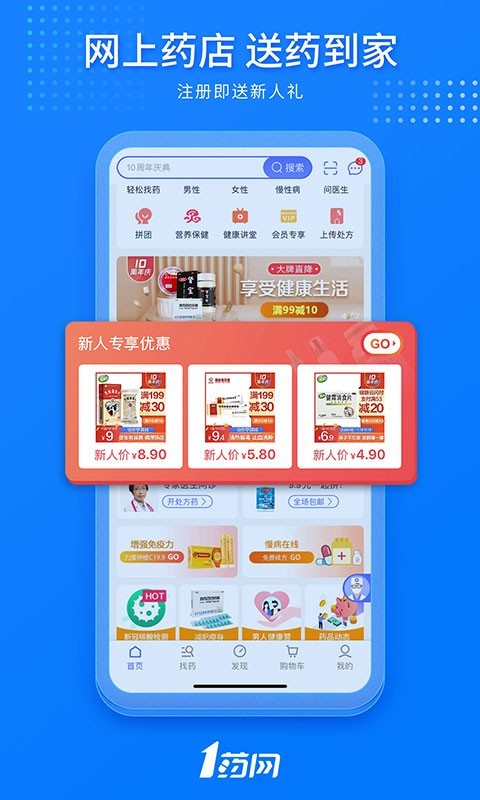 1药网,专业的网上购药平台,获得国家食品、药品监督管理总局认证,其前身是:1号药店、壹药网。