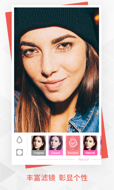 - 磨皮美白:瞬间让皮肤白皙透亮,细化毛孔