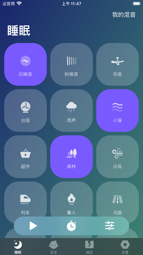 白噪音App能帮您解决这些困扰,从此告别不眠之夜,让您和您的宝宝快速入睡进入梦乡。使用助眠白噪音有很多好处: