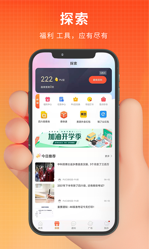 “PU口袋校园”是由苏州天宫信息技术有限公司自主开发,是国内领先的大学生成长服务互联网应用服务商。专注于为高校学生的成长提供 “素质培养”以及“职业培养”的服务和支撑,帮助学生完成从“学生族”到“合格社会人”的转化。