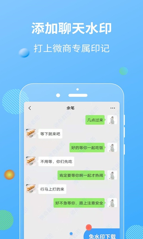 4.聊天界面字体:字体大小可以随意改变,得到你想要的截图界面 5.团队建设:微商收代理、二级代理,都可以用团队模式来管理,发圈直接一键复制,不怕封号 6. 批量P图:选择需要增加水印的图片,一键全部加上水印,不需要单张添加,方便快捷,超多可爱小贴纸,视频滤镜、字幕、一步搞定,让你的视频秒变高大上 7.拼图模式:模板应有尽有,找到自己合适的模板制作*美的照片
