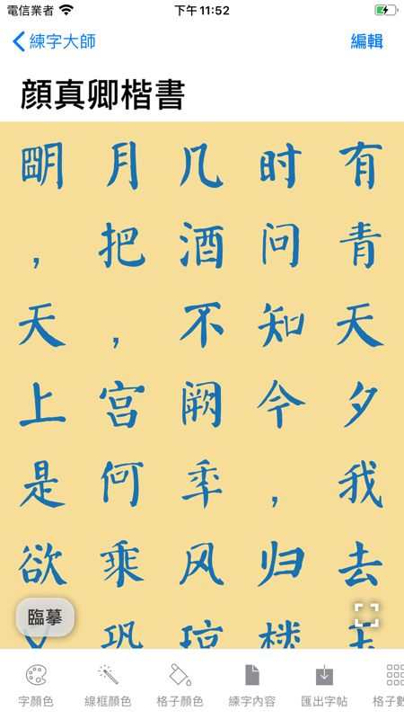 练字大师是一款手机生成字帖的工具,输入文字即可生成多种字体的硬笔行书楷书字帖,内置古诗词内容的字帖,可供快速生成字帖,进行临帖练习,享受传统文化书法的乐趣。