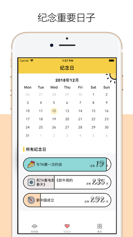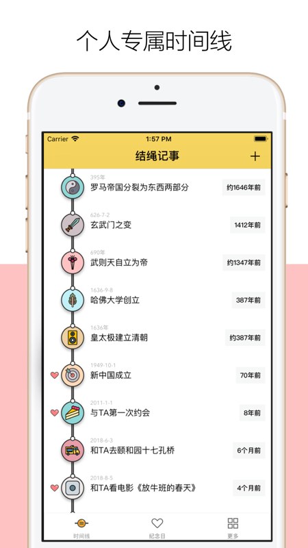 其次,它也是一个纪念日工具,您可以方便地标记时间线中的日子来作为一个纪念日,提醒这个重要日子的到来。