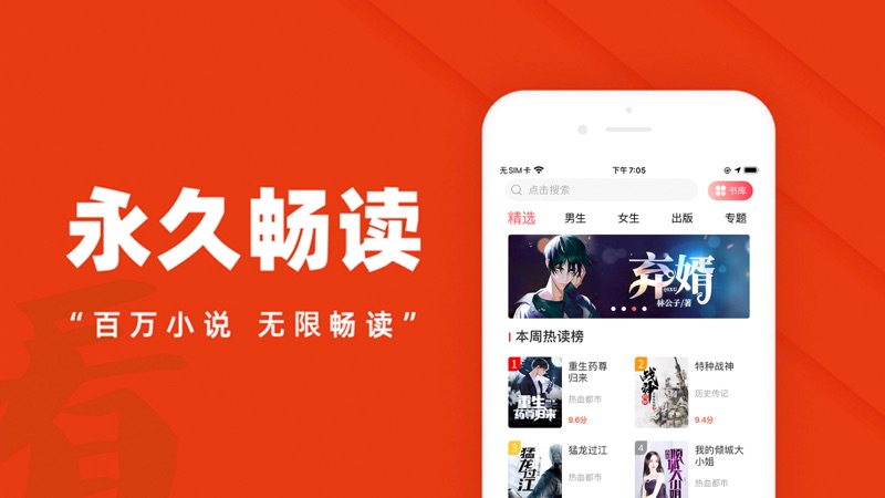 有特色的男频、女频推荐通道,送达给不同阅读口味的读者,掀起全民阅读浪潮。