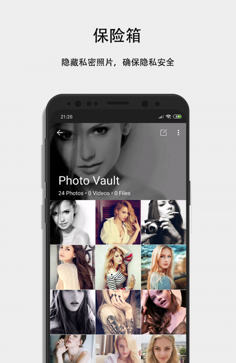 【保险箱】通过AES军事级加密算法,对那些您不想与人分享的内容进行加密,且对文件格式、大小没有任何限制,还支持直接拍照和录制私密视频文件,加密后的数据安全无忧