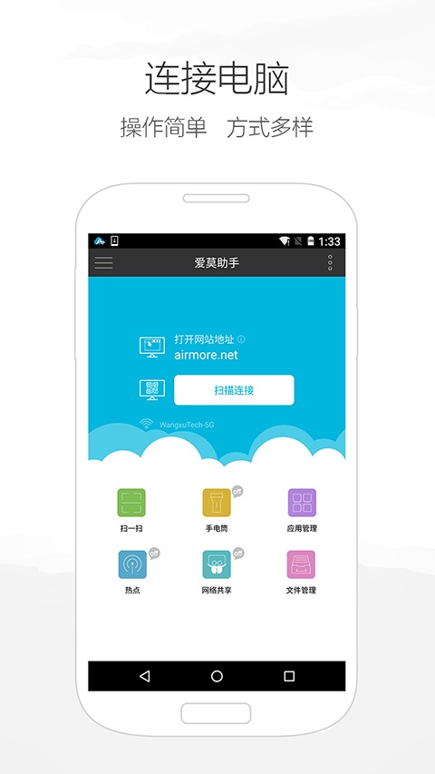 爱莫助手是专门为实现电脑与手机之间无线数据传输与分享而开发的跨平台应用软件。打开电脑浏览器,扫描二维码,即可开启您的无线传输分享之旅。