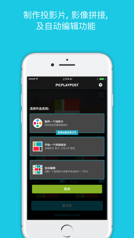 ·PicPlayPost是一个简易上手的软体, 可将影片及照片混合编辑至不同的相框设计,