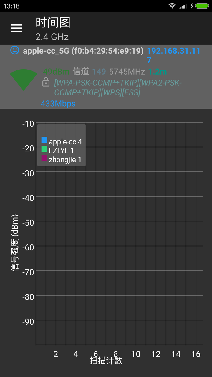 3.图形显示接入点各时间段的信道强度