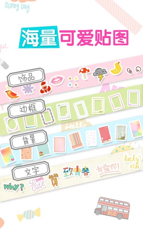 美图贴贴是一款专为女生设计的大头贴软件。一分钟DIY个性大头贴,多图随心拼贴,打造你的可爱照片墙~内置上百种精心设计素材,让你轻松的将照片装饰的更加可爱、有趣。