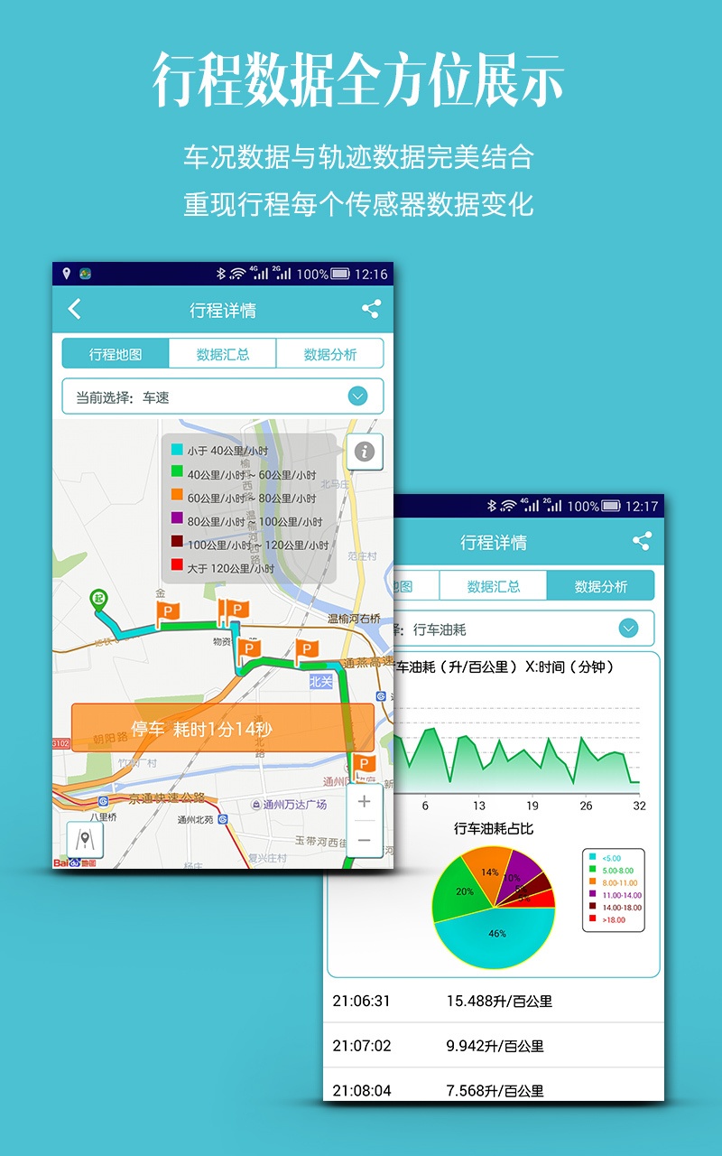 1、行程分析优化,新增平均速度占比分析、出行时间段占比图分析、平均油耗占比分析
