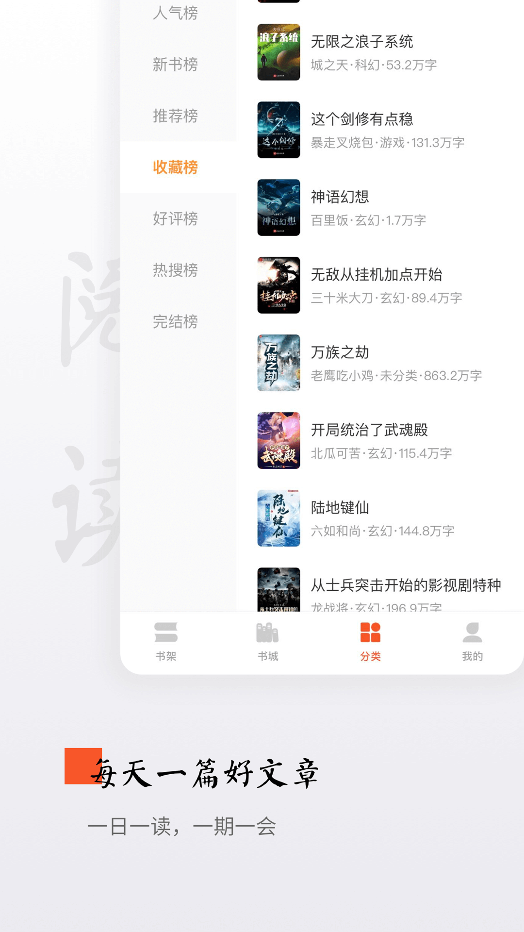 精彩阅读,热门分类,都市爽文、言情穿越、玄幻修仙、武侠……你想看的这里都有!