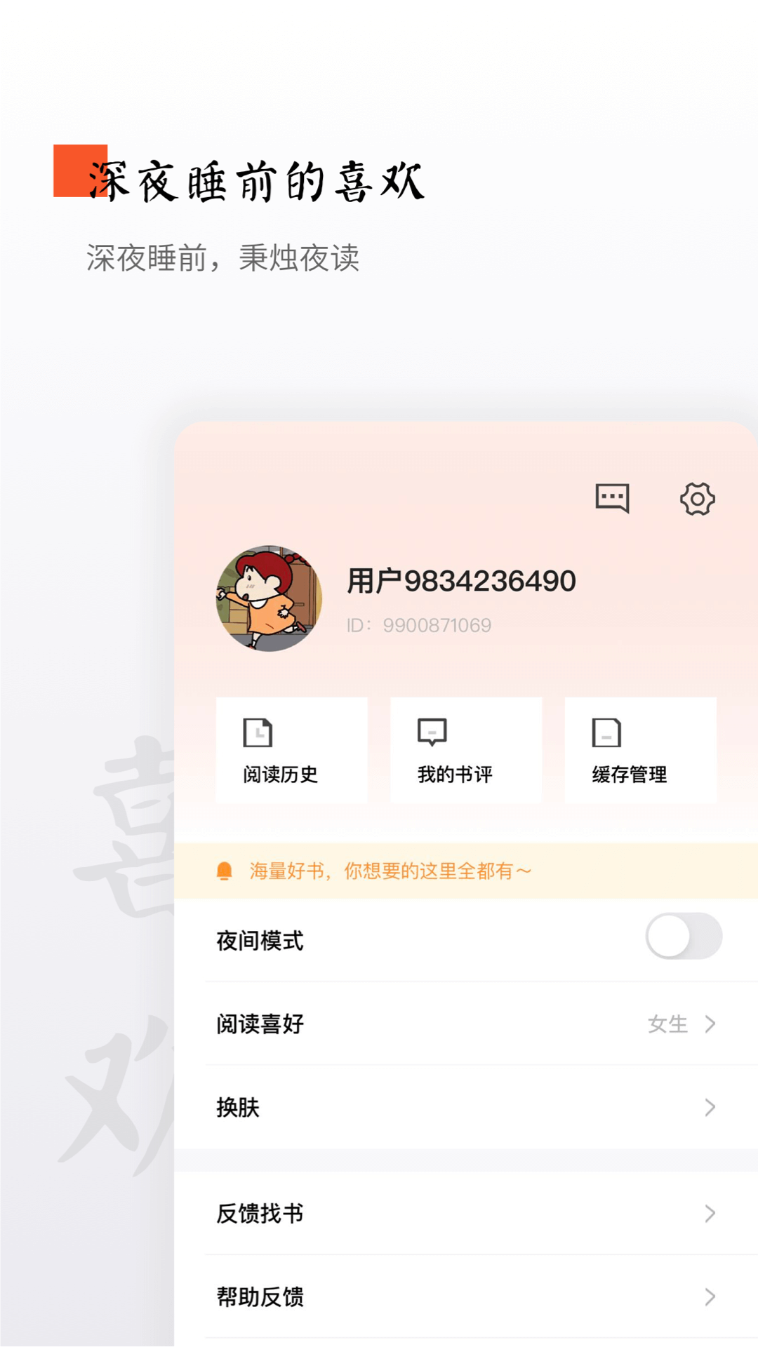 根据你的阅读爱好,个性化推荐,优质书单,书城精细化推荐,总有一款打动你!