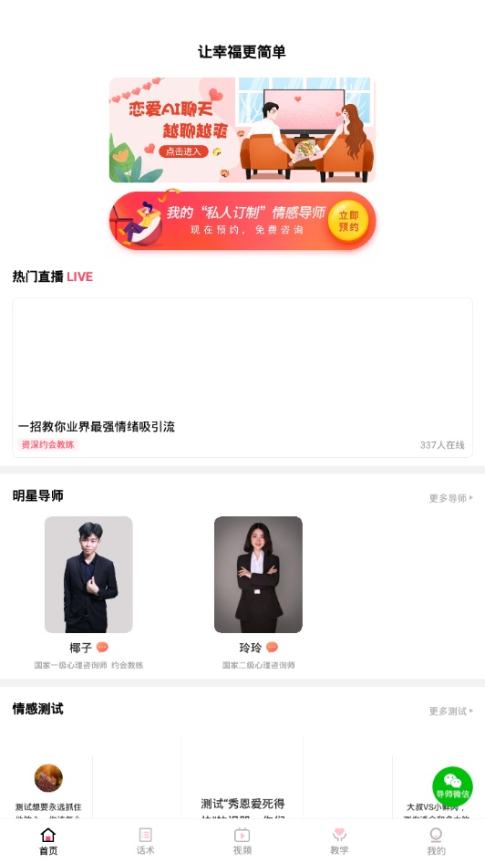 有着许许多多的可检索恋爱话术,招数国际惯例与聊天模板,永久性升级。