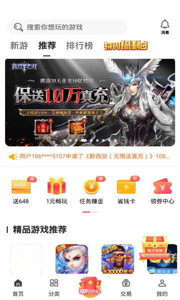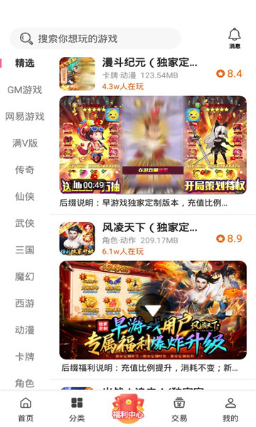 2、精选游戏推荐,进入首页可以自动推荐各种类型游戏的精品;