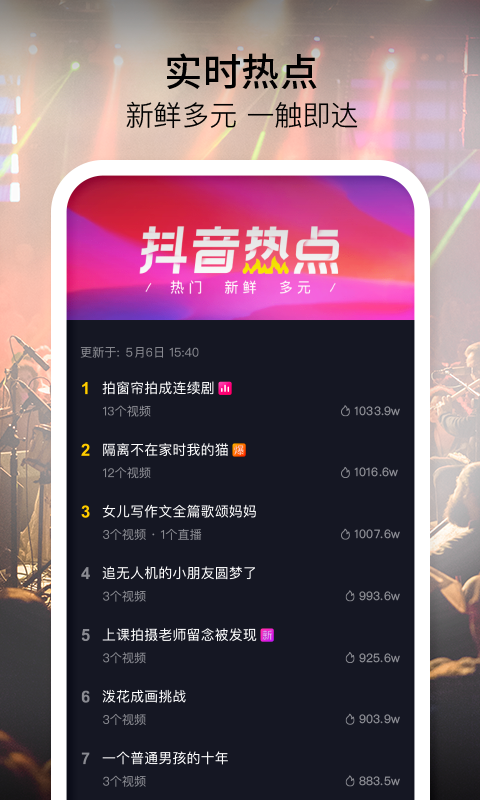 抖音实质上是一个专注年轻人的音乐短视频社区,用户可以选择歌曲,配以短视频,形成自己的作品。它与小咖秀类似,但不同的是,抖音用户可以通过视频拍摄快慢、视频编辑、特效(反复、闪一下、慢镜头)等技术让视频更具创造性,而不是简单的对嘴型。