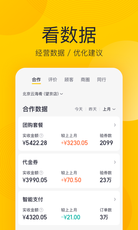 “美团开店宝“APP是美团点评提供给餐饮商家的移动端经营管理平台,餐饮商家开店必备