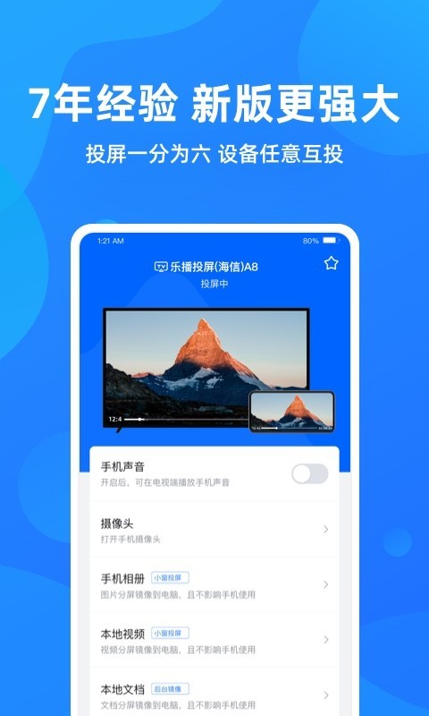 简单好用的乐播投屏App,支持任何手机和电视。乐播投屏软件是手机投屏电视,电脑投屏电视的投屏神器。独有的投屏与一键镜像,下载乐播投屏手机版,让手机连接电视,把电视变为手机的大屏幕。