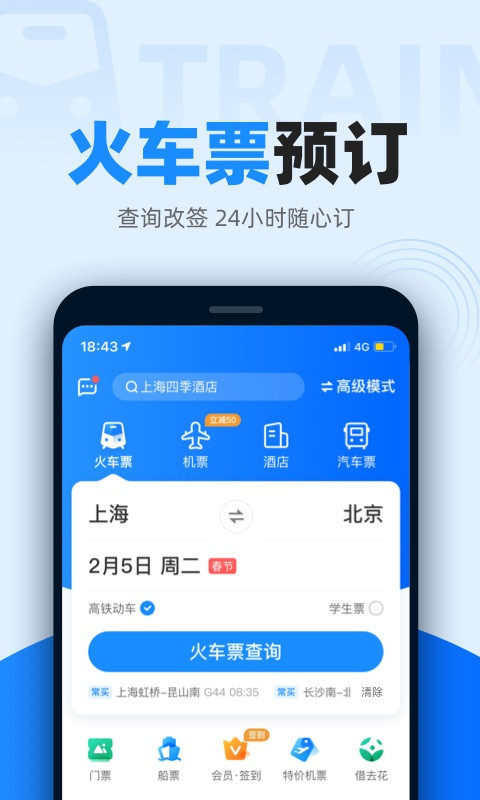 【其他功能】购买高铁,动车票,同时支持12306网站和铁路12306购票。