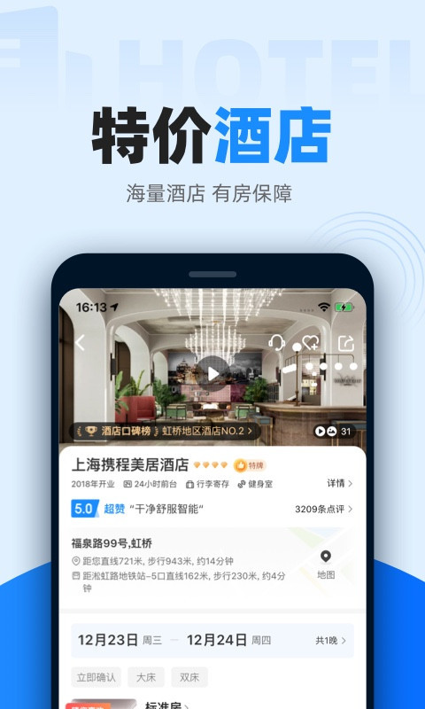 【酒店机票】智行火车票app通过地图查找酒店,实现特价机票火车票比价;