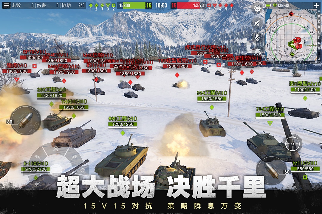 《坦克连》是一款大型多人在线坦克射击游戏,您可以在移动设备体验以15V15进行的大规模坦克战。在包括自行火炮在内的五种坦克类型中变换车辆,并根据不同地图灵活选择您的策略以获得胜利! 战斗规模将获得升级,您将加入多达30辆坦克共存的庞大战场。战局的态势将根据每个地图局部的力量对比而动态变化。准备好上演乘胜追击和力挽狂澜的剧本吧,这一切都要从选择好您的进攻路线开始,您将时刻为团队发挥重大作用。
