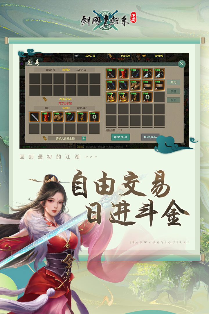 《剑网1:归来》是西山居基于《剑侠情缘网络版》端游打造的一款复刻版武侠MMO手游。游戏以南宋的宋金大战为背景,还原18年前端游经典玩法,包含五行相克、挂机烤火、装备不设绑定、千人热血帮战等亮点。诸位大侠可尽情结交好友,与独孤剑、龙五等大侠煮酒论剑,一起回到最初的江湖! ————游戏特色———— 1、《剑侠情缘网络版》经典复刻 复刻《剑侠情缘网络版》端游画面玩法,还记得华山赏月、襄阳北约战、桃花