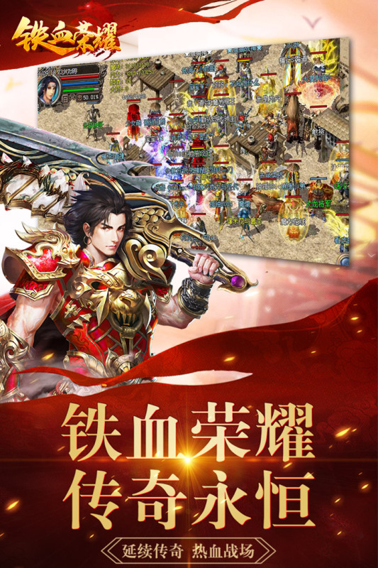 经典传奇再现,兄弟共造传奇《铁血荣耀》震撼来袭,经典版本,热血攻杀。激战世界BOSS,神装全屏掉落,装备无绑定,自由交易无尽财富等你创造。沙城霸主已经归来,玛法大陆风云在线,你,还在等什么!游戏中还有海量玩法、刀刀暴击、烈焰PK、比奇夜战、沙城争霸,再续王者传世经典!各种炫酷套装、装备全靠爆、元宝免费送!随时随地,逐鹿玛法大陆,问鼎传奇之巅。兄弟,等你来战!