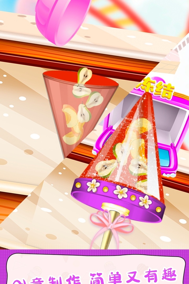 【甜甜爱消除—宝宝冰淇淋DIY工厂店】开张啦,炎炎夏日,怎么可以没有冰淇淋呢?今天在我们的游戏中就能带着你的宝宝经营一家属于你们的宝宝冰淇淋工厂店,让宝宝尽情发挥想象力创造不同风格的冰淇淋,喜欢的吃货们还在等什么,快来甜甜爱消除玩一把角色扮演吧,当一名专业的冰淇淋制作大师,动动手指,选择一款你喜欢的口味,把它放进杯子里;缤纷的水果,多彩的糖果,精美的饰品,在这里你能轻松的掌握最新的美食搭配的方法。