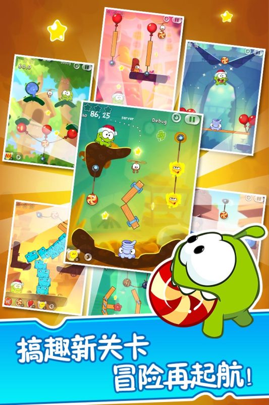 经典益智大作再续新冒险:一路上与新结识的7位各具神通的爆萌小伙伴展开合作,帮助小吃货完成各种刺激挑战!寻找四叶草,开启隐藏关,完成任务拿奖牌、为小吃货精心打扮!一起开动脑筋,圆满Om Nom的糖果梦吧!