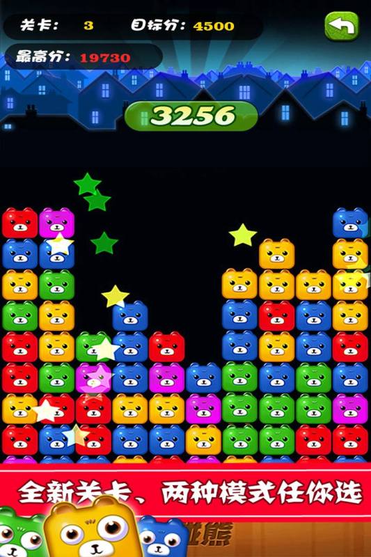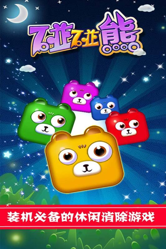《碰碰熊》是一款超萌消除小游戏,高清的游戏画面和全新的娱乐体验,让玩家爱不释手。 -游戏玩法- 1、和消消乐一样,两个及以上的熊熊即可消除,单指操作哦! 2、不同于找茬、找你妹等游戏,游戏没有任何的时间限制,可以尽情思考。 -通关提示- 1、同时消除的同色熊熊越多,获得的分数越高; 2、剩下熊熊越少你获得的额外奖励将会更多哦! 比消灭星星更好玩的萌宠碰碰熊!!!
