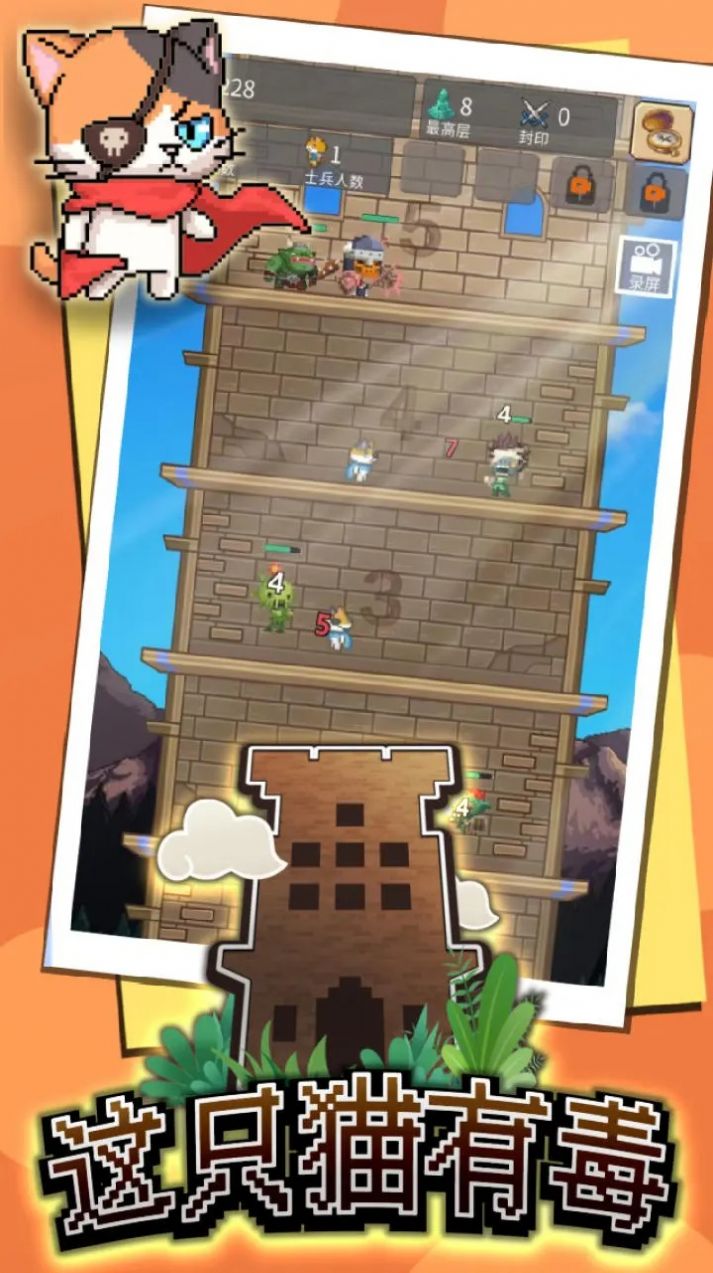 这只猫有毒通过不断的挑战成为最强大的猫咪吧。在这个世界中有一座被所有人都仰望的高塔,传说在高塔之上隐藏着最珍贵的宝物,玩家作为一只嚣张的猫咪今天就要对这座塔发起挑战,高塔拥有大量的关卡等待你来挑战,你需要从最底层开始与不同的boss展开决斗,提升自己的实力攀爬到最顶层。