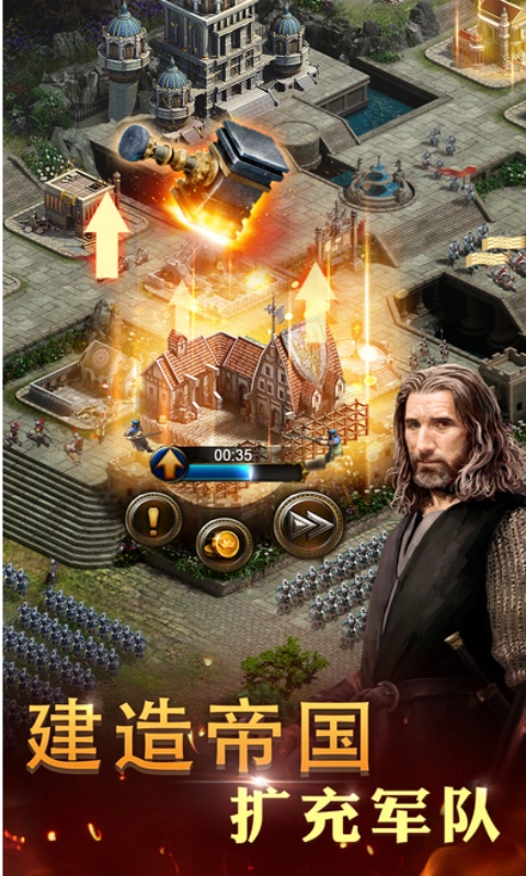 4、升级城市,建设城墙,设置陷阱,发展生产,研究科技,训练更多的士兵,让你的帝国变得更加强大!