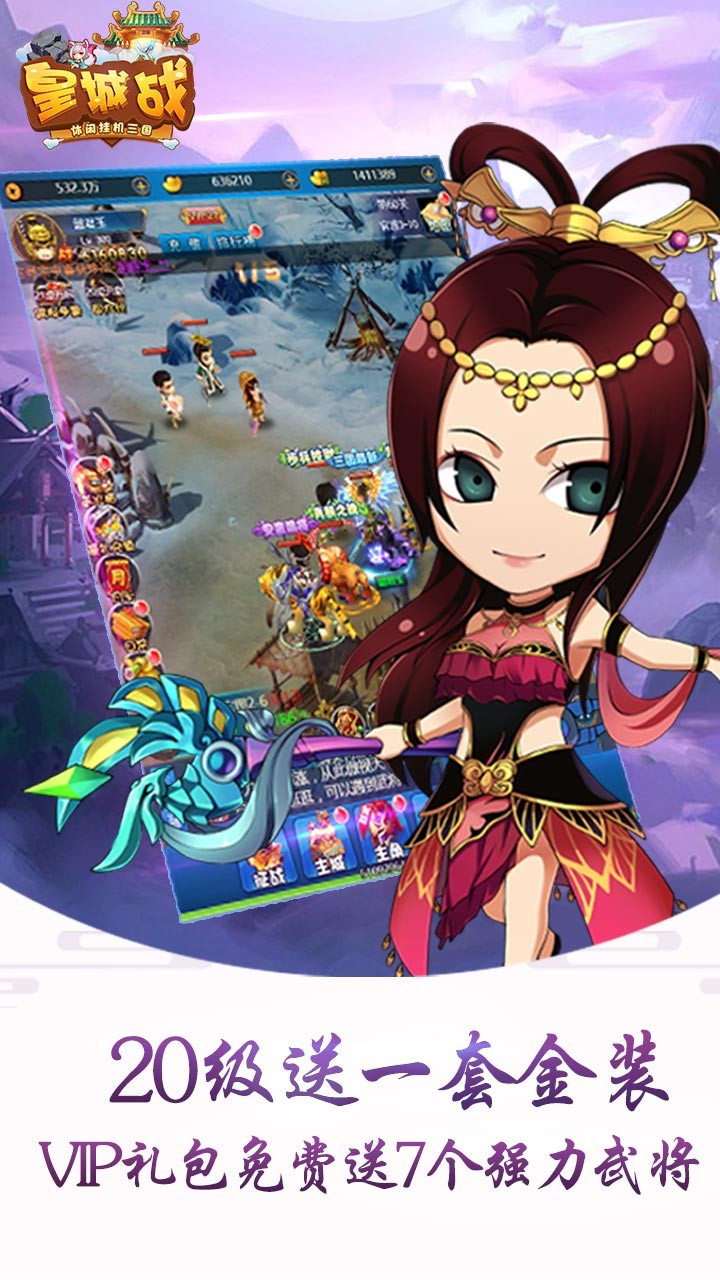 皇城战是一款好玩的大型动作RPG手游,该游戏拥有丰富的武将角色,你可以招募他们陪伴你争霸三国,一统天下;丰富炫酷战骑战宠,骑上他们开始呼风唤雨,鏖战不休!在这个属于你的三国世界里,一步步开启最顶级的制霸之旅;本版本是定制高福利版本,上线直接赠送海量元宝绑元以及各种装备材料。感兴趣的玩家快去下载吧!
