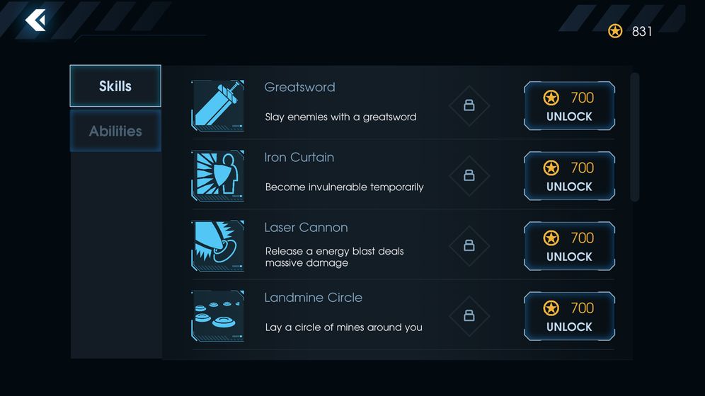 2、超过50种不同的攻击武器正在等待你解锁,并在黑色区域获得活力,每种武器都有不同的难度设置,可以显示最高的战斗力。