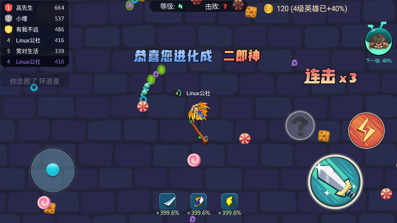 3、秀出你的操作,击杀你的对手,进化新的角色,闪亮出击,制霸全场!