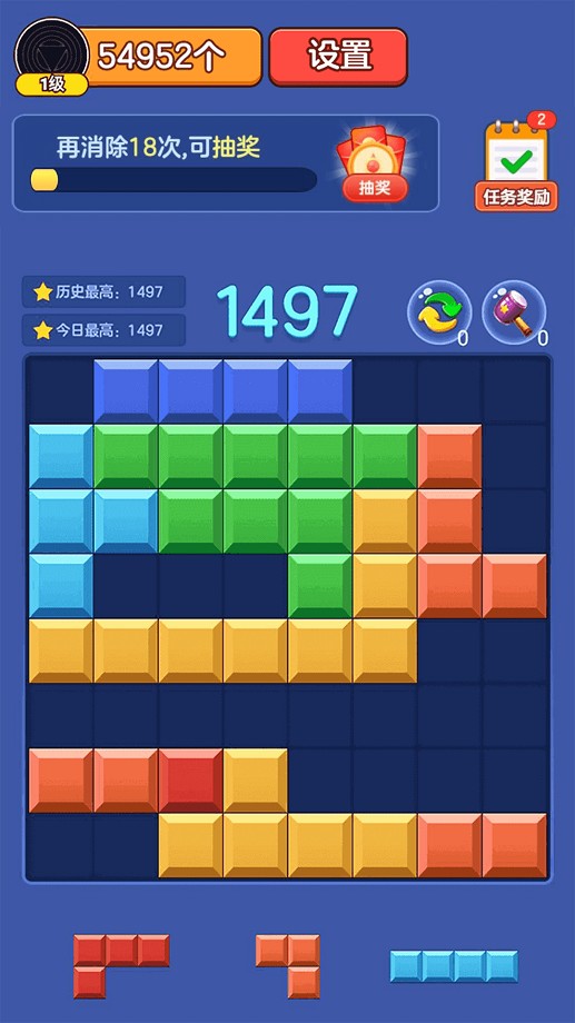 爱上消方块一款非常适合消磨时间的卡通消方块游戏。游戏中设置了非常多的关卡等待玩家来体验,游戏采用了经典俄罗斯方块的玩法作为核心,玩家需要在不同形状的方块掉到底部之前不断变换它的位置,在底部由方块组成一行后就会自动消除获取分数啦,游戏虽然操作上简单不过还是需要玩家动脑筋思考的,无脑让方块掉落是行不通的。