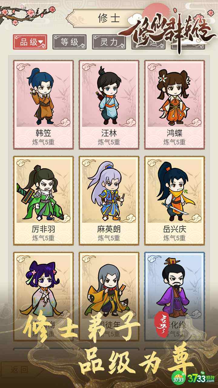 2、众多能力不同的弟子们等你来收集,不断进行培养,组建队伍进行战斗冒险,获得更加强大的力量。