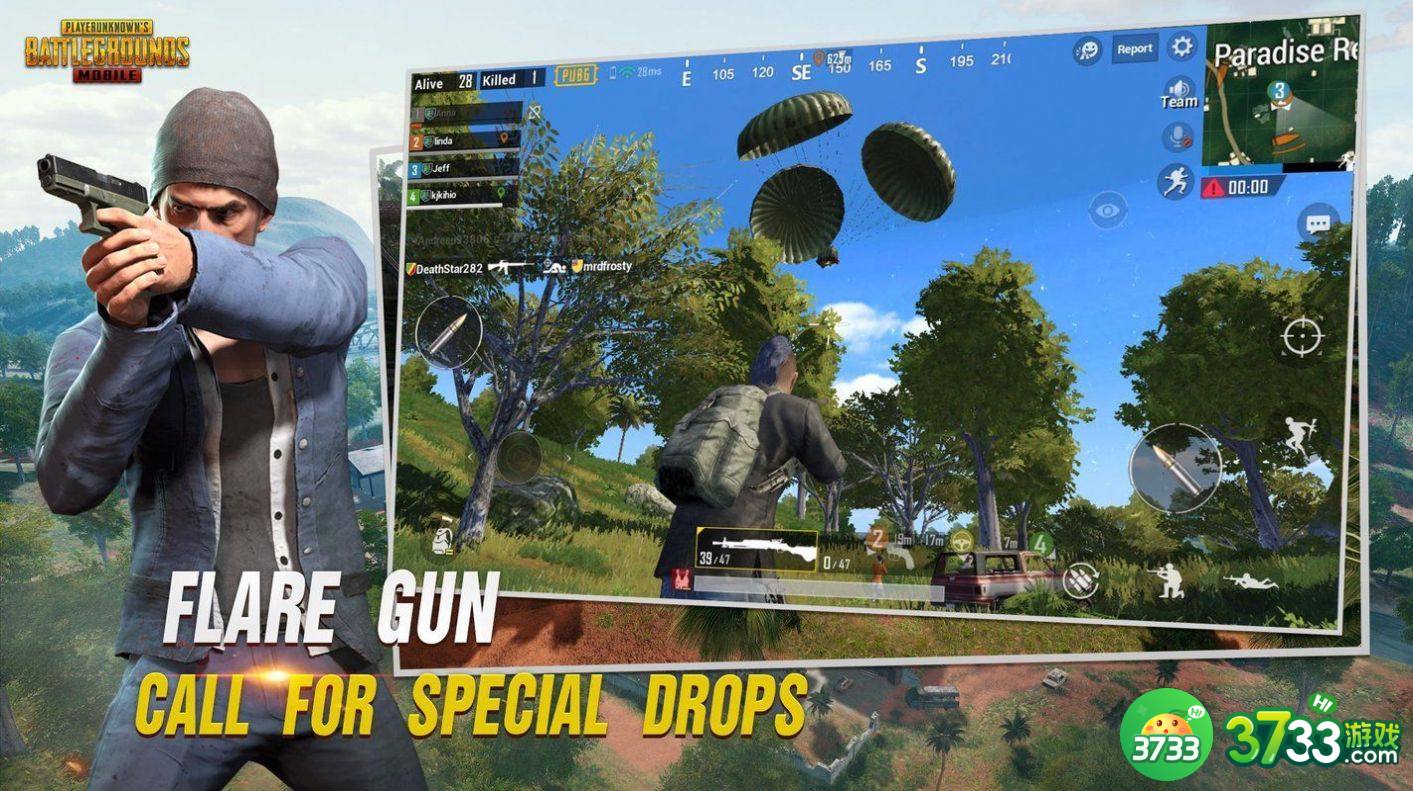 pubg国际服一款风靡全球的吃鸡对决手游。玩家可以选择一个人面对接近百人的对手进行激情对决,也可以选择和朋友一起开黑,通过合作的方式将所有的对手统统打败,玩家通过降落伞的方式随机降落在地图的各个地方,并通过探索的方式获取资源和装备与敌人进行激情对决,成功活到最后就会获得大量奖励哦。